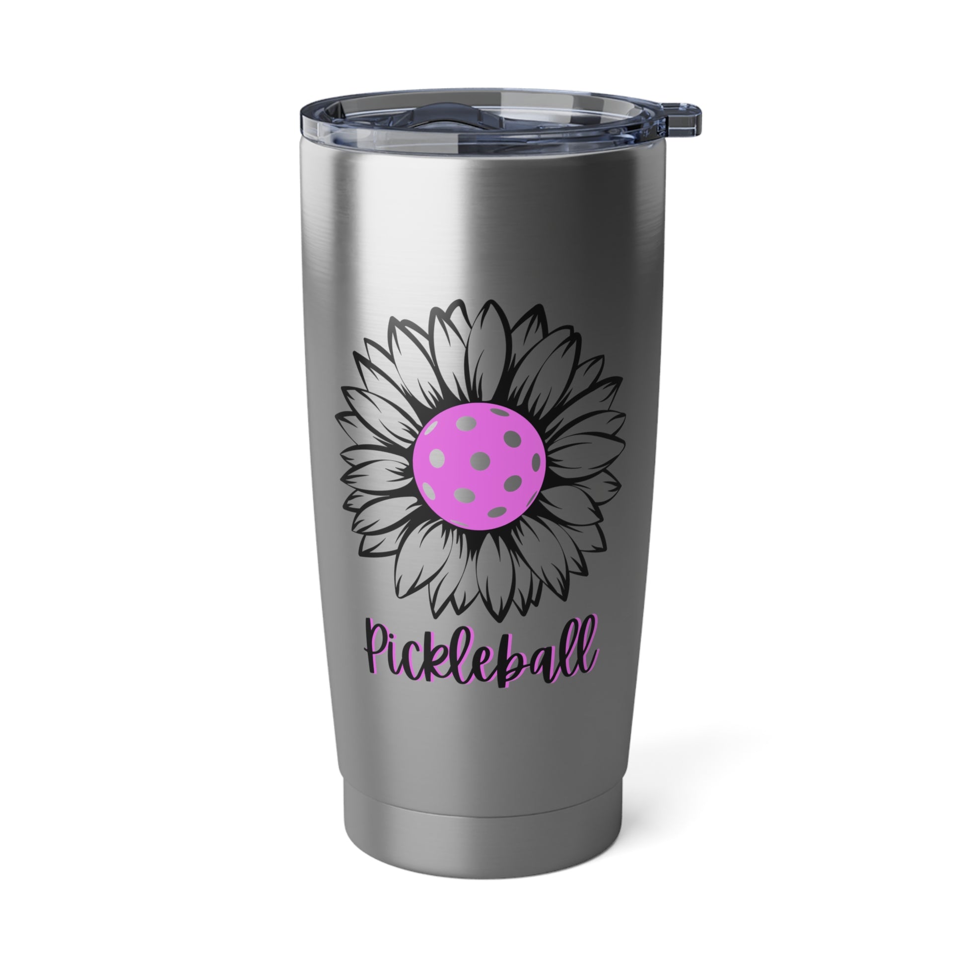 The Pickleball Sun Flower Vagabond 20oz Tumbler is the perfect companion for your active lifestyle. Keep your drinks at the perfect temperature with its 20oz size and durable construction. With a fun sun flower design, this tumbler is both stylish and functional for all your daily adventures.